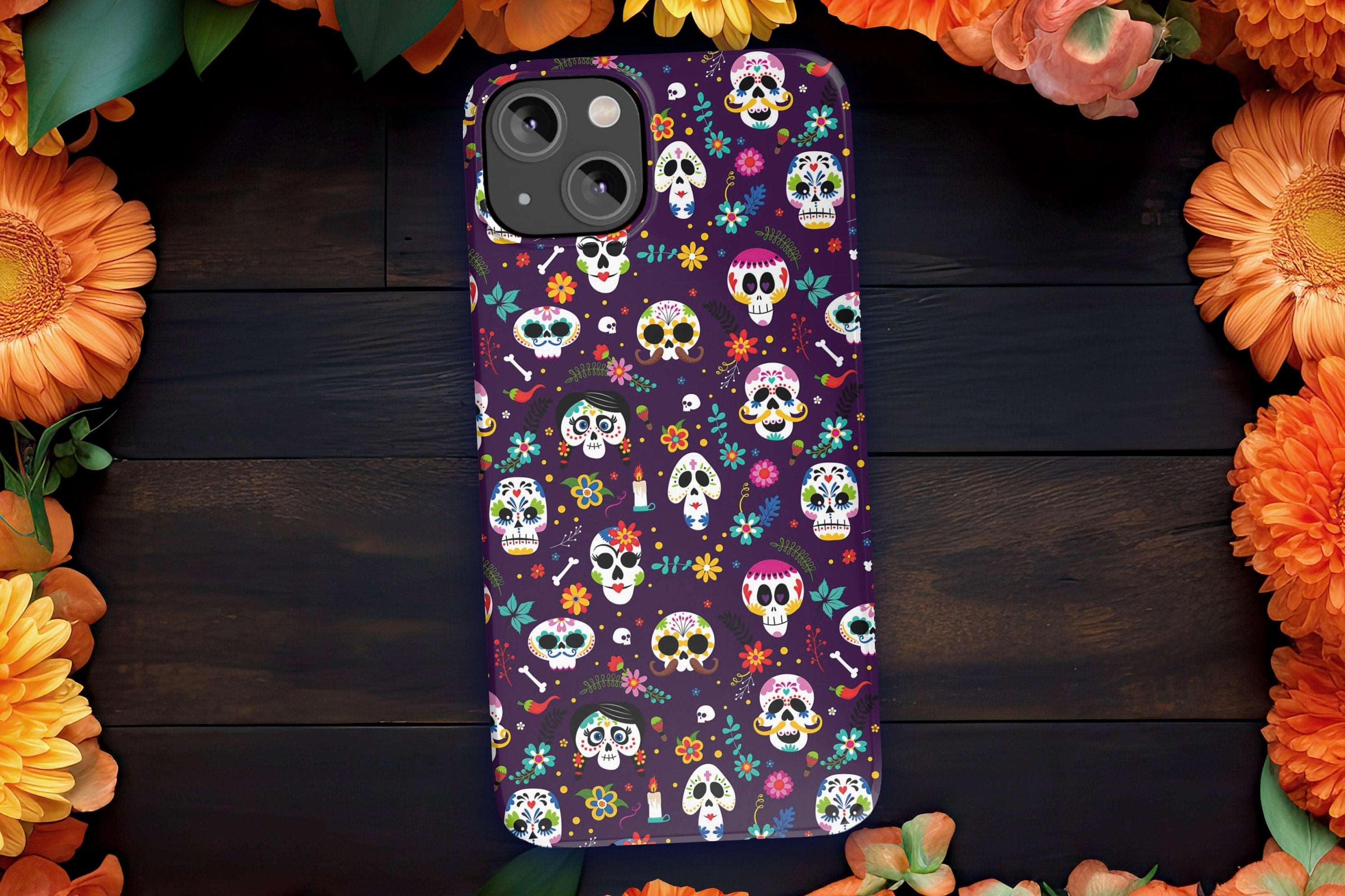 Embrace the vibrant and rich cultural celebration with this Day of the Dead Phone Case! Inspired by Día de los Muertos, this stunning design showcases a beautifully decorated sugar skull, representing the essence of Mexican folk art and tradition.