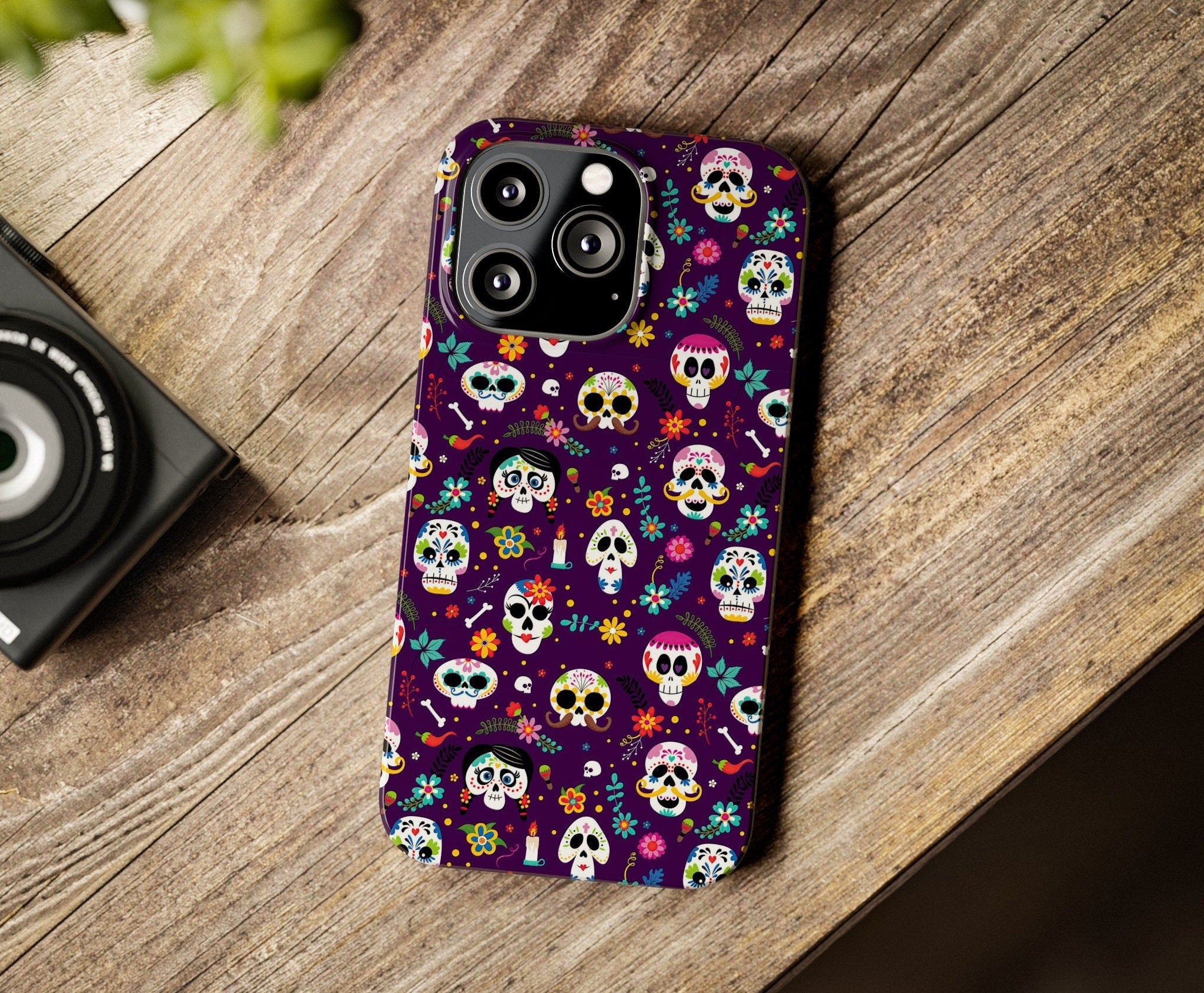 Day of the Dead Sugar Skull iPhone Case 14 13 12 11 Pro XR, Día de los Muertos Calavera Hard Tough Cover, Mexican Folk Art Gift