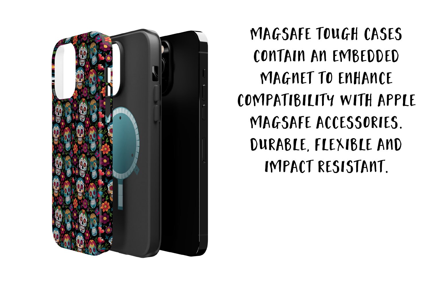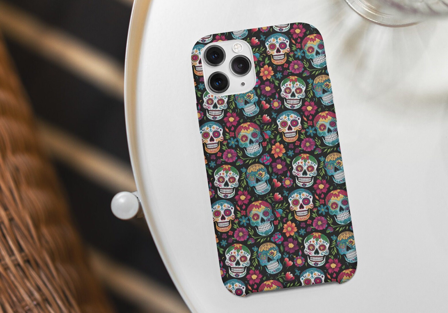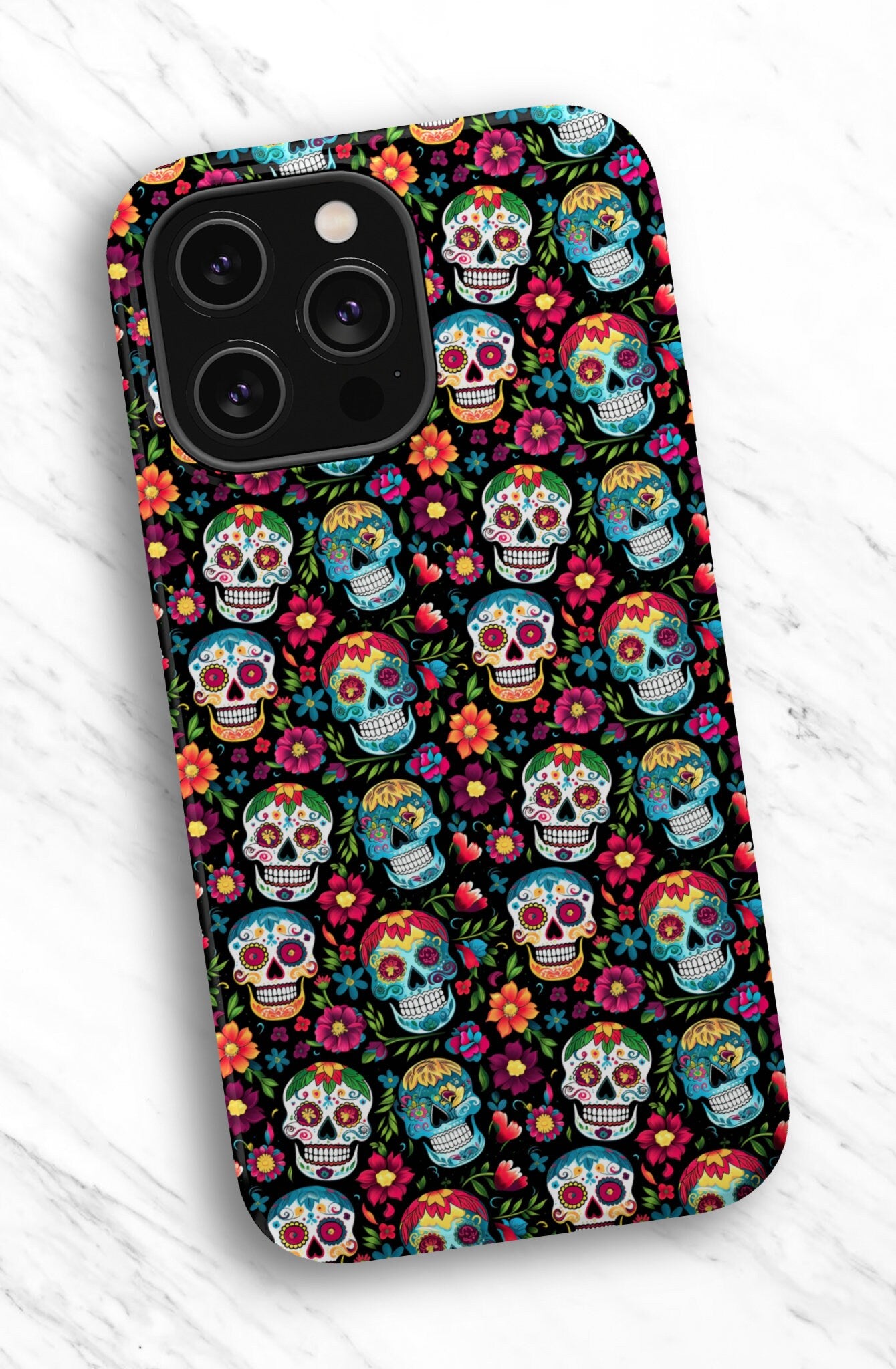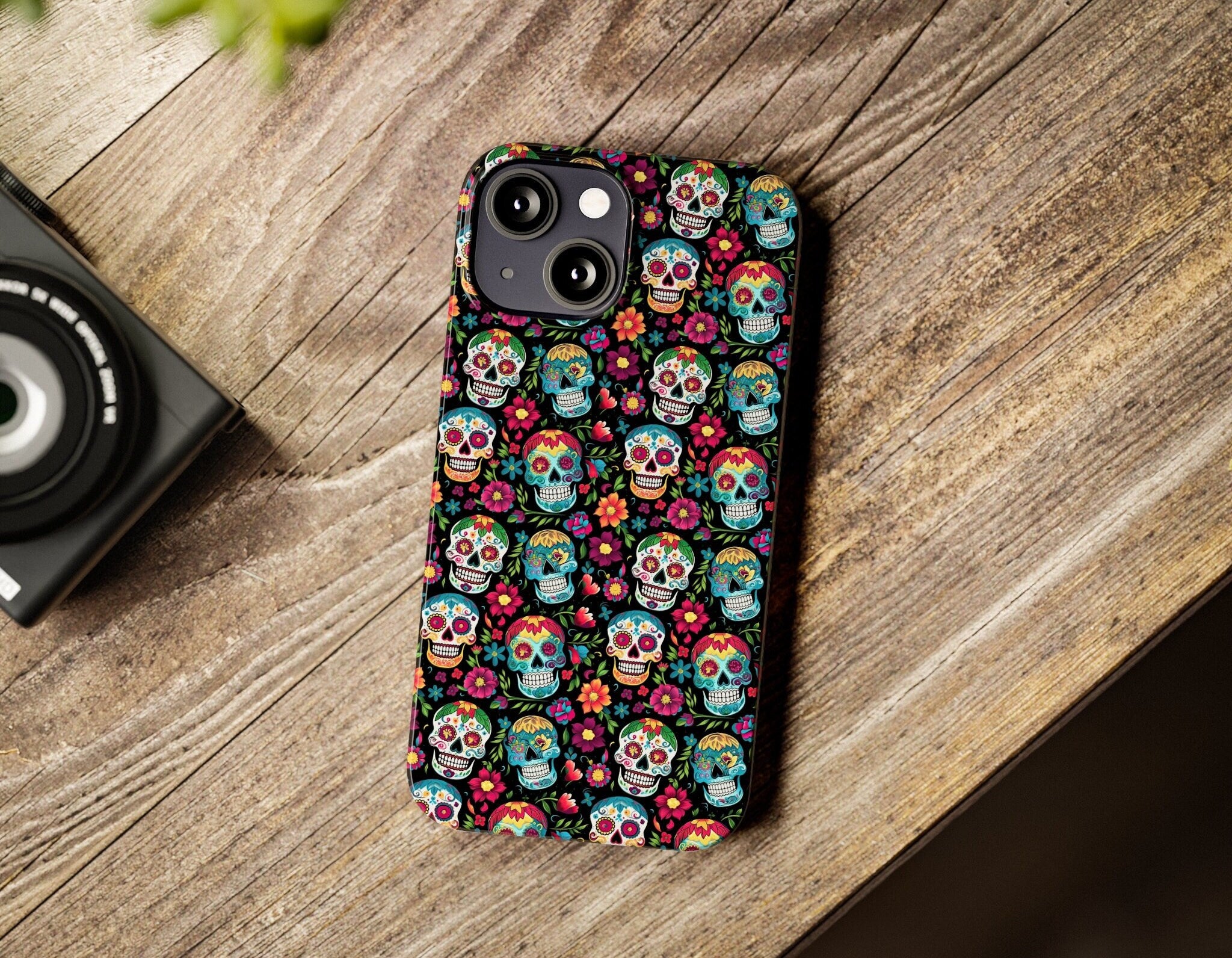 Day of the Dead Sugar Skull Phone Case, Día de los Muertos iPhone 14 13 12 11 Pro XR Case, Calavera Hard Tough Cover, Mexican Folk Art Gift