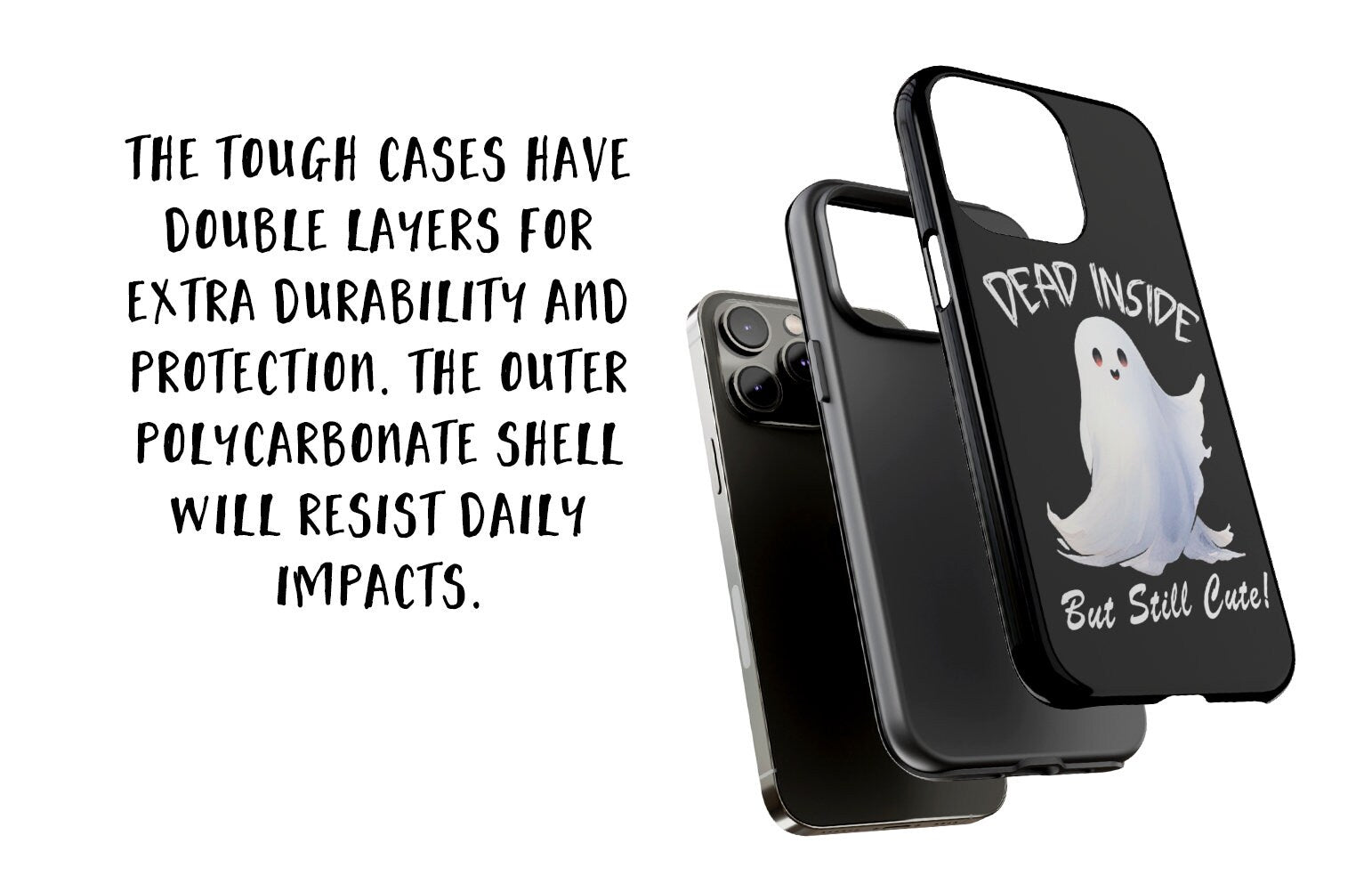 Ghost Halloween Phone Case, Spooky Kawaii iPhone 14 13 12 11 Pro XR Case, Cute Dead Inside Hard Tough Cover Funny Gift