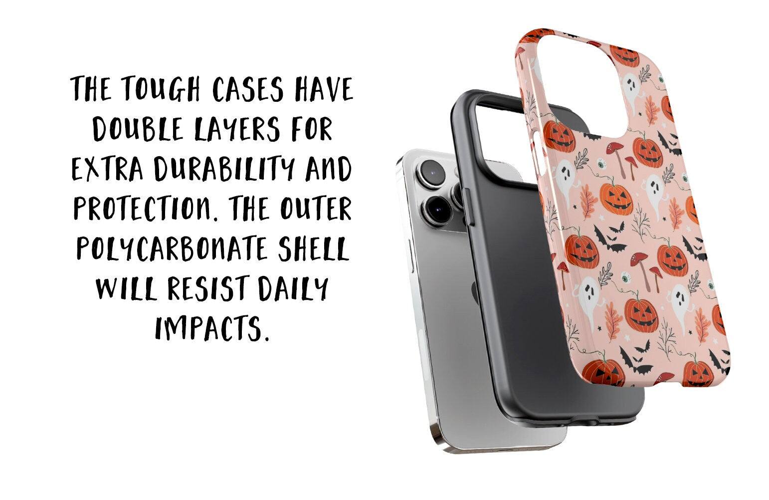 This phone case is not only stylish but also durable and tough, providing excellent protection for your phone. The pattern adds a touch of playful charm to your device, making it a perfect accessory for Halloween enthusiasts.