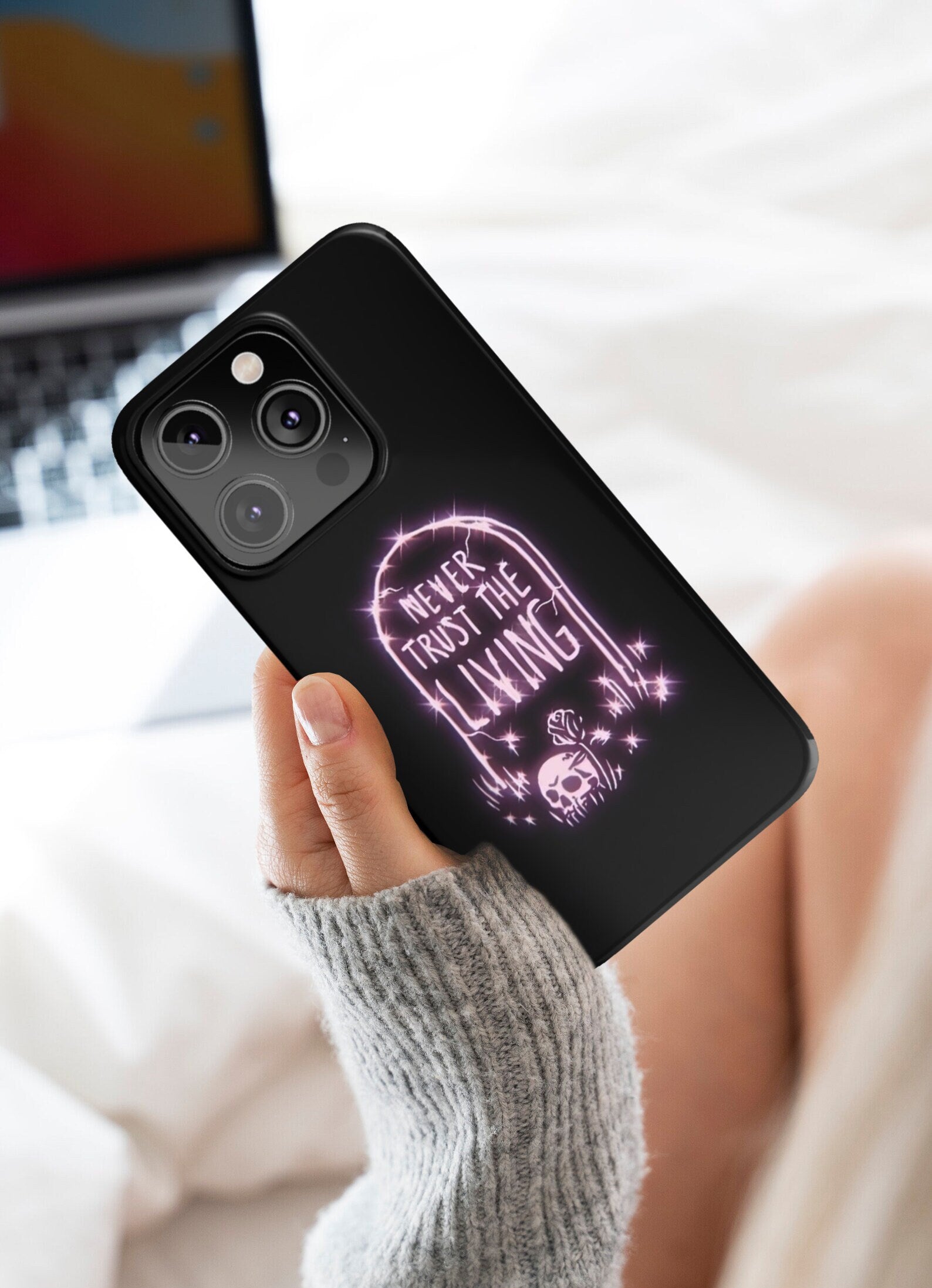 Halloween Grave iPhone Case 14 13 12 11 Pro XR, Funny Goth Spooky Hard Tough Protective Cover Case
