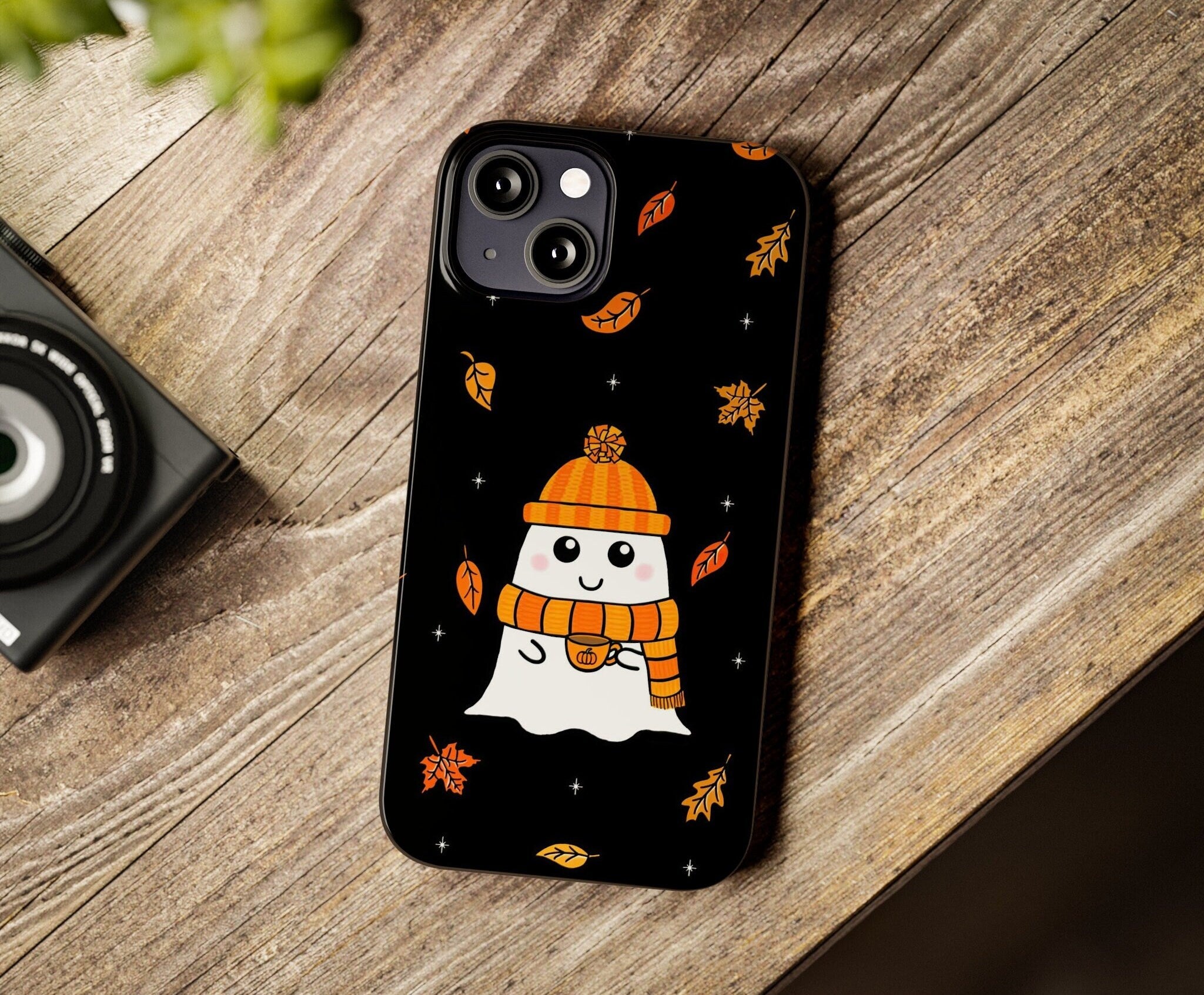 Halloween Kawaii Ghost iPhone Case 14 13 12 11 Pro XR, Cute Autumn Fall Hard Protective Cover Case