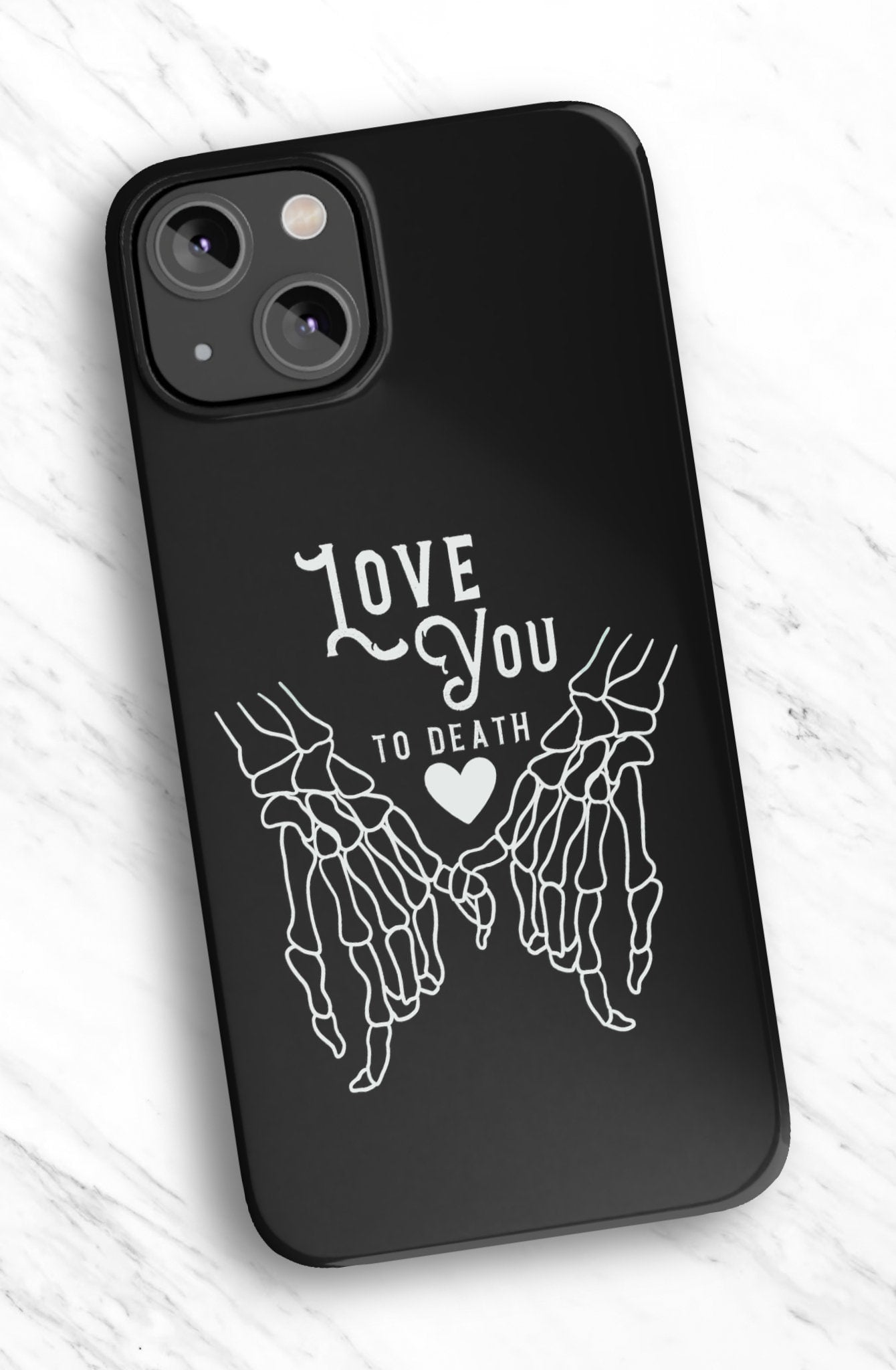 Halloween Romantic Skeleton iPhone Case 14 13 12 11 Pro XR, Love You to Death Gothic Romance Hard Tough Cover
