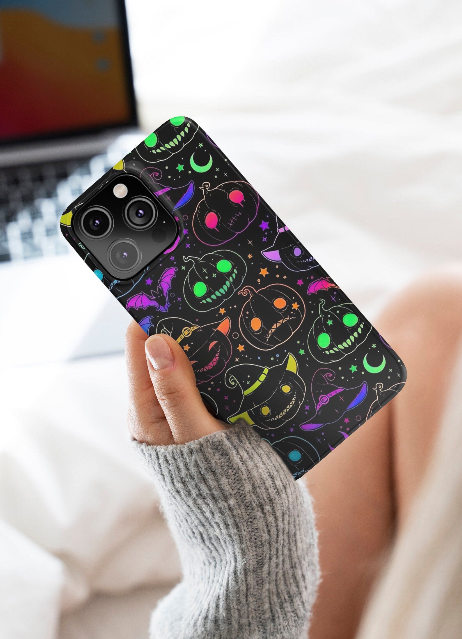 Halloween Spooky Neon Pumpkins iPhone Case 14 13 12 11 Pro XR, Seasonal iPhone Hard Tough Cover, Fall Lover Gift