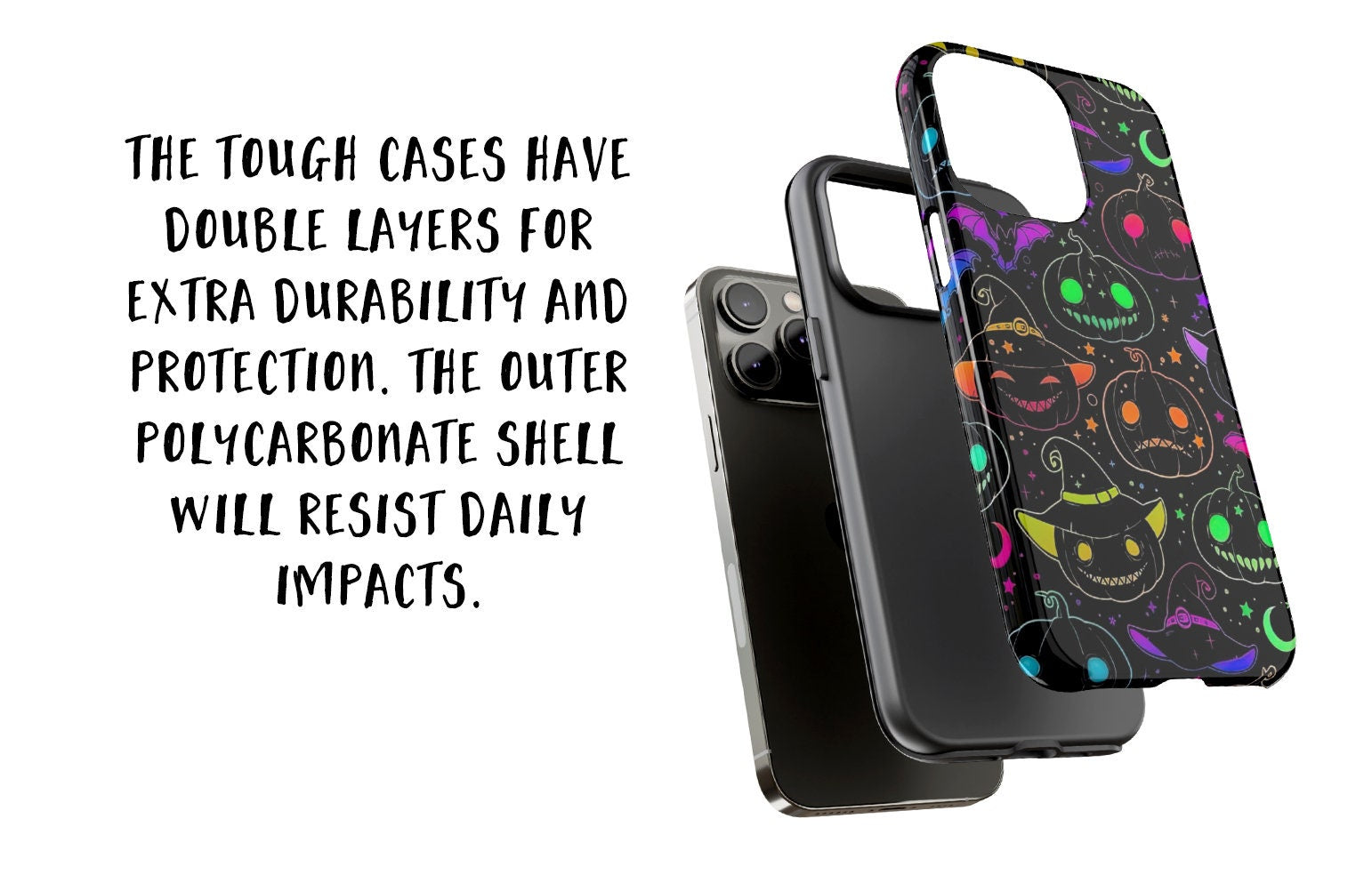 Get into the fall season spirit with our Neon Phone Case! Embrace the colorful fun of Halloween with a delightful seasonal accessory for your iPhone. This eye-catching case is available for iPhone 14, 13, 12, 11, Pro, XR, and more, providing a perfect fit for your device. This phone case is not only stylish but also durable and tough, providing excellent protection for your phone.