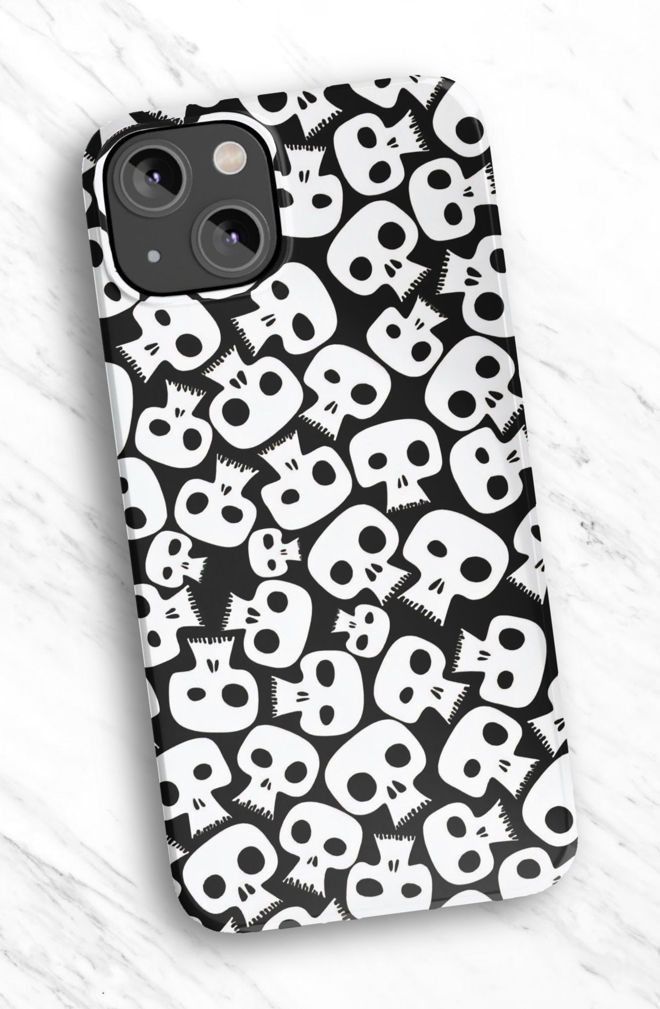 Halloween Spooky Skeleton Skulls iPhone Case 14 13 12 11 Pro XR, Seasonal Goth Hard Tough Cover