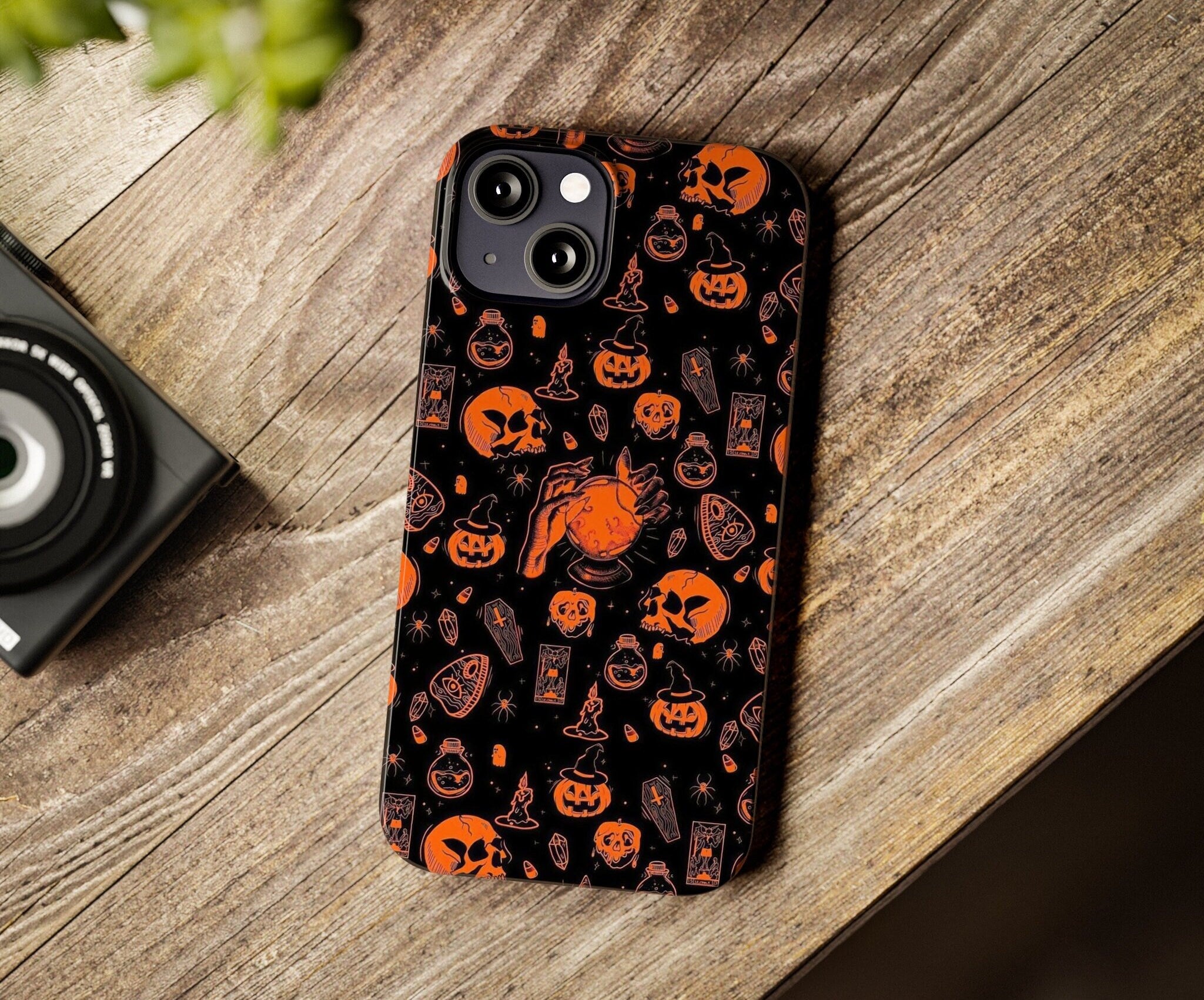 Choose from a variety of sizes to ensure a perfect fit for your phone. Whether you're a fan of spooky aesthetics or just want to add a little Halloween flair to your phone, our Phone Case is the ideal choice. Grab yours now and showcase your love for all things spooky this Halloween season!