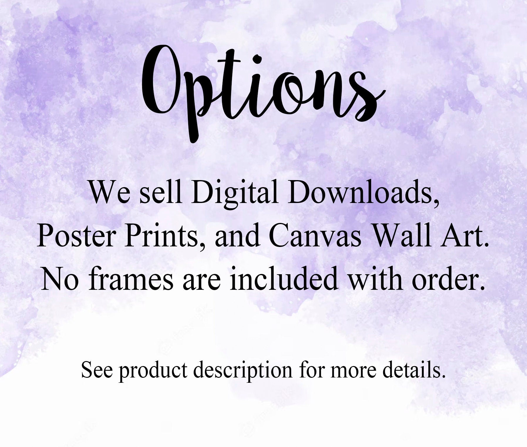 All artwork is available as a POSTER PRINTS, DIGITAL DOWNLOADS, or STRETCHED CANVAS ART. Please read description below before choosing. This listing is for our POSTER PRINTS and CANVAS ART options.