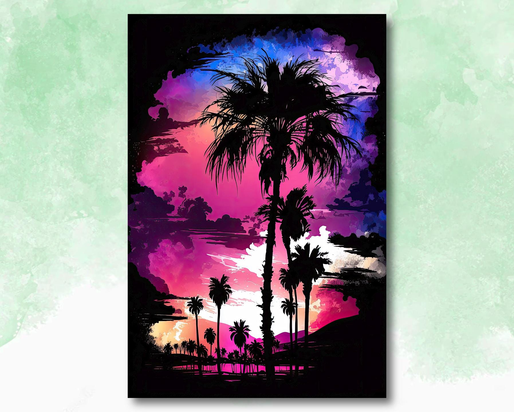 Palm Tree Sunset Art Print Watercolor Coastal Wall Art Nature Inspired Gift Tropical Beach House Home Decor